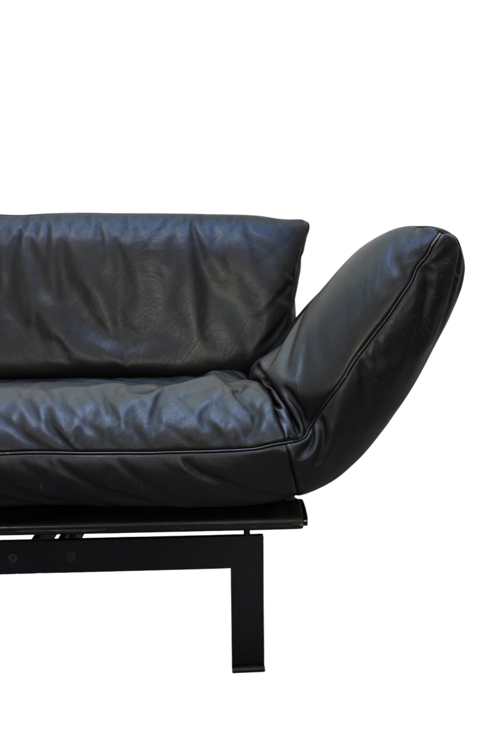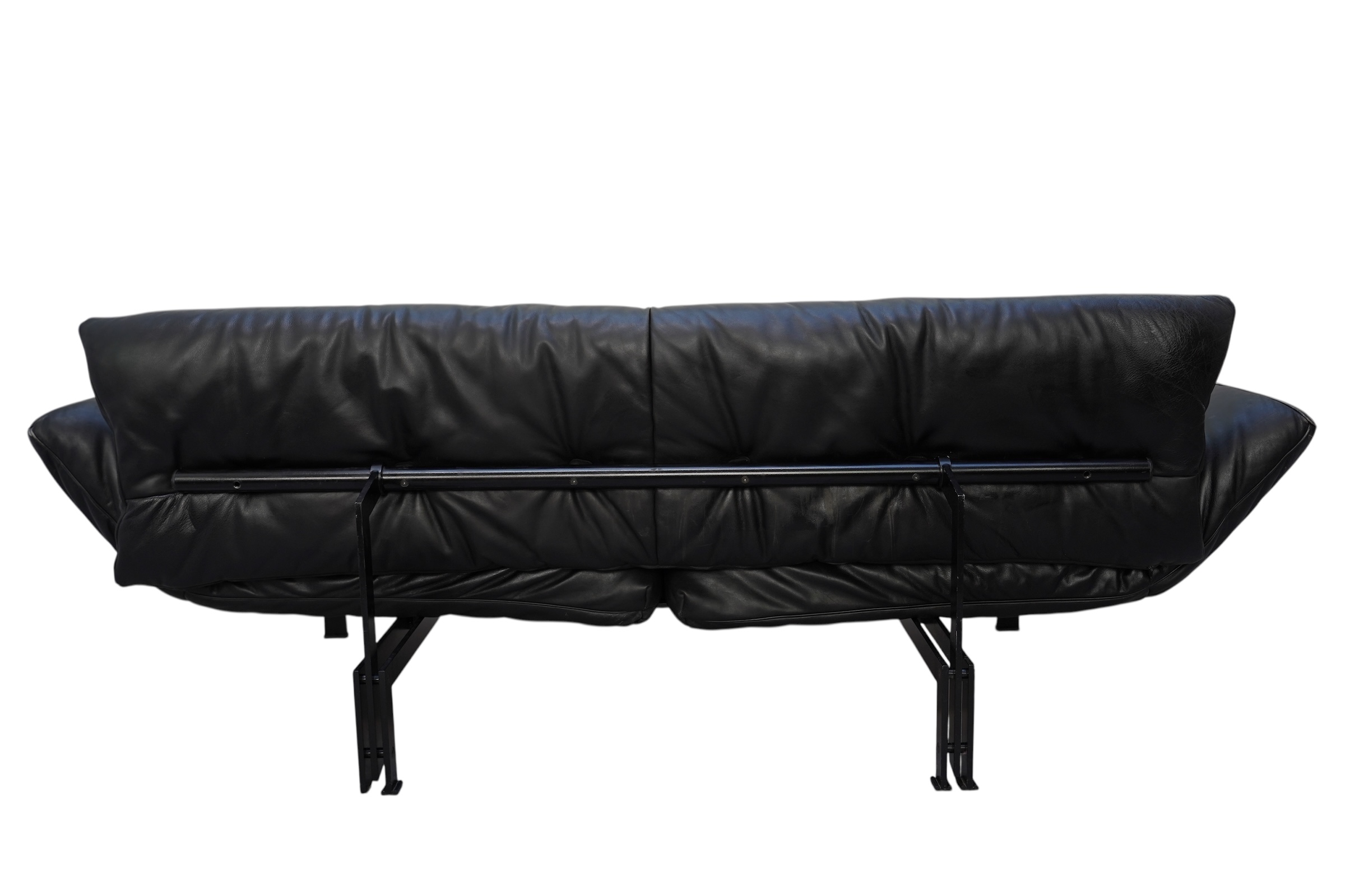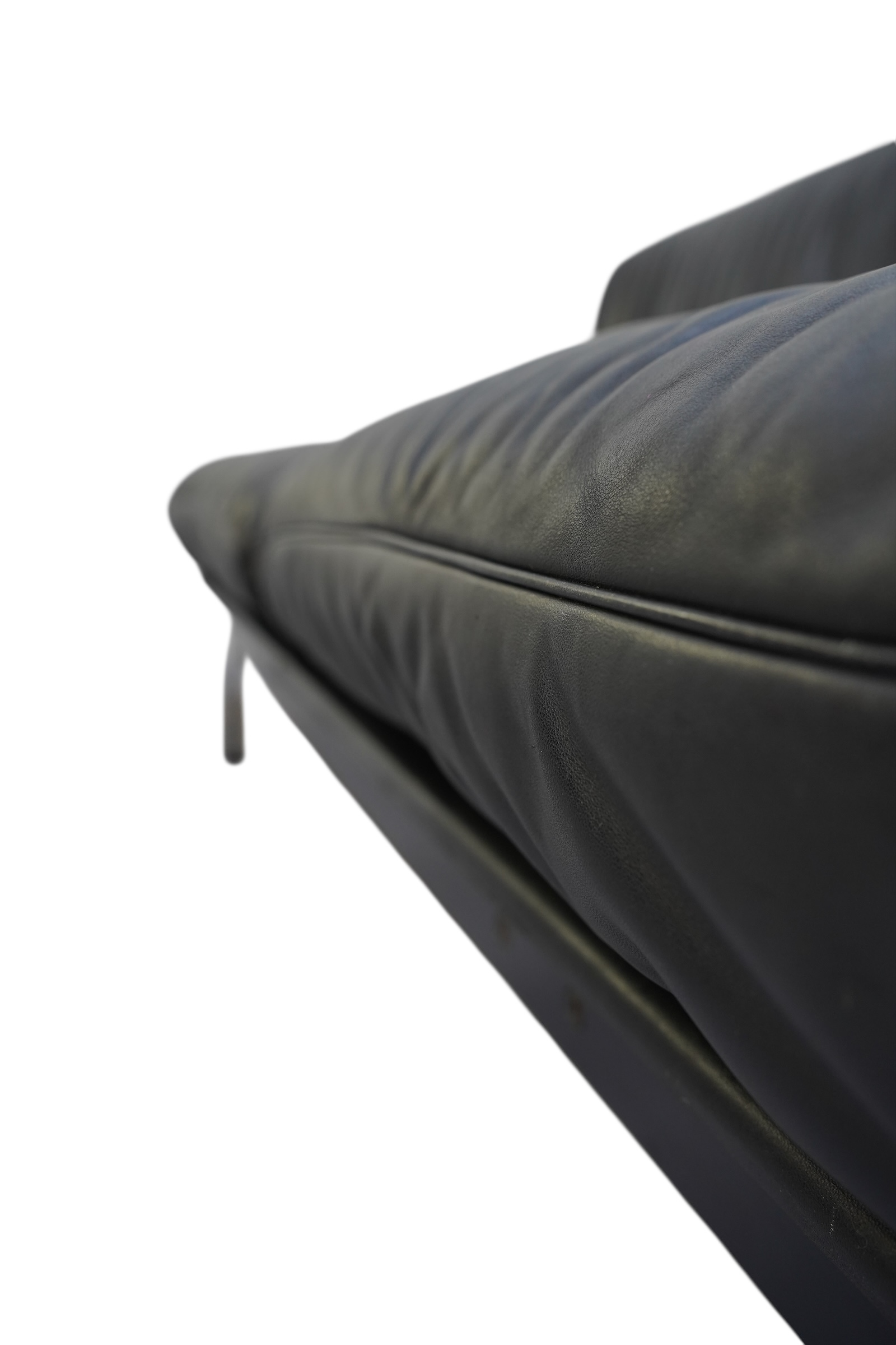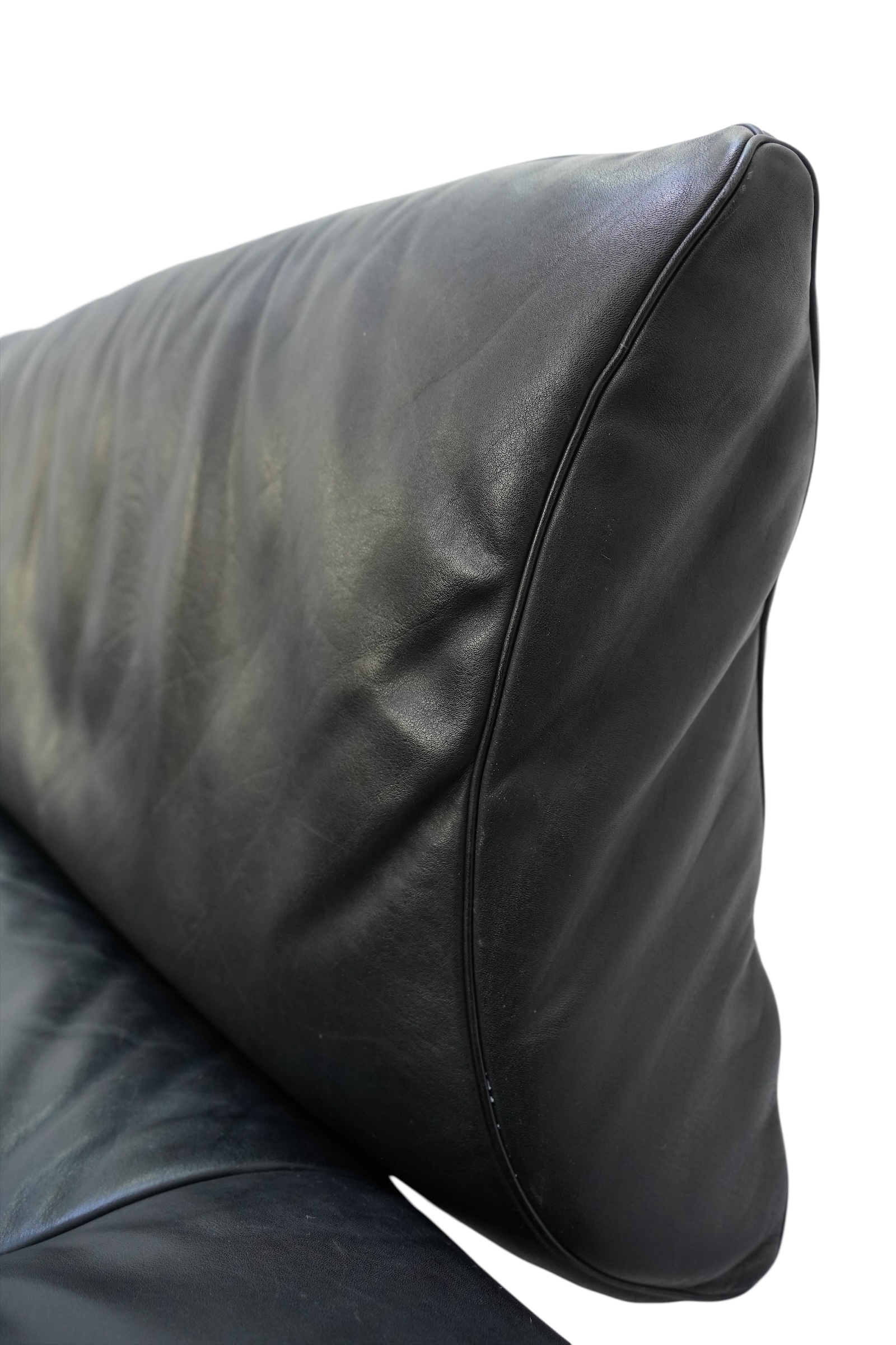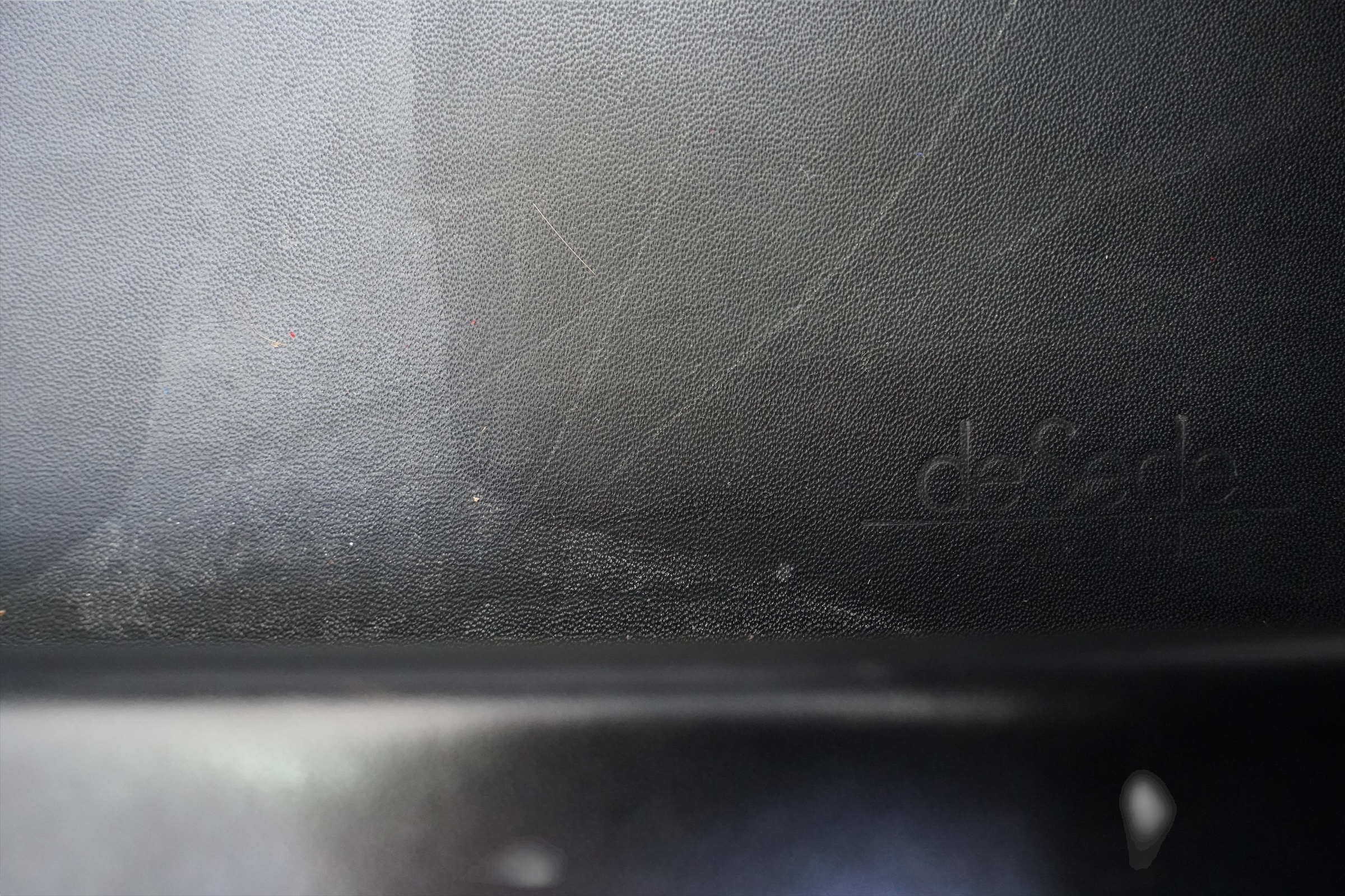 Canapé design original De Sede des années 1990 de Rito Frigg en cuir noir – cadre noir et cuir patiné. Ce canapé offre plusieurs configurations.