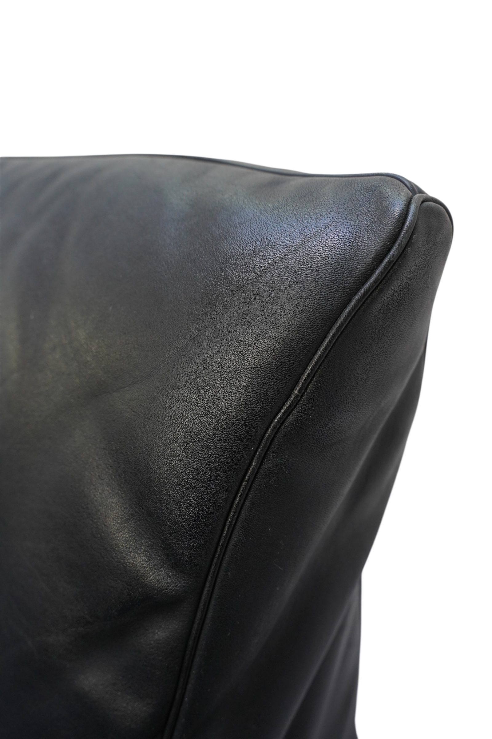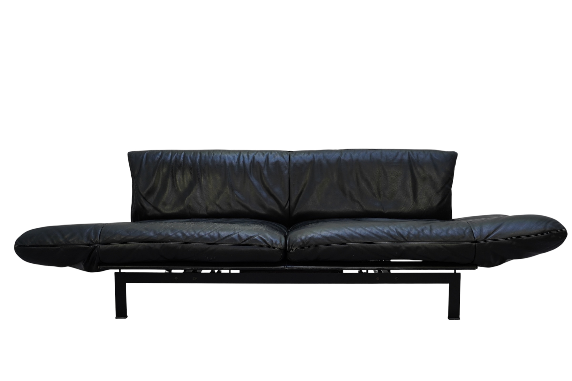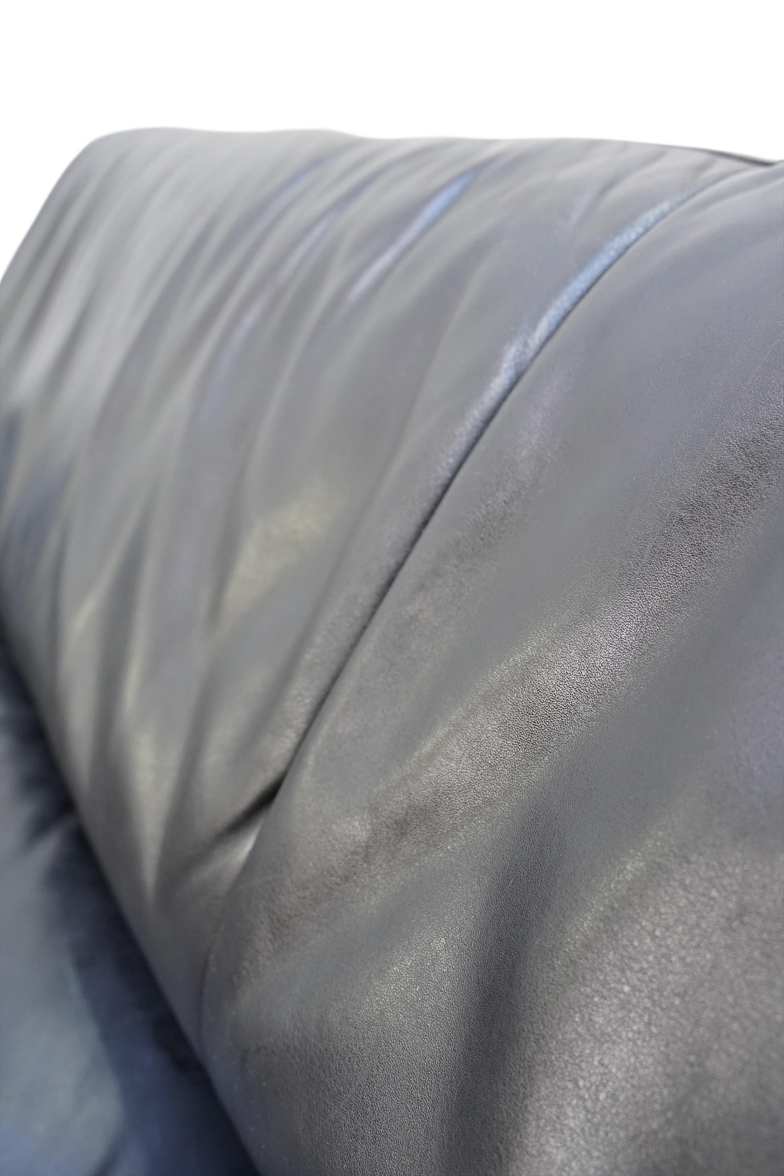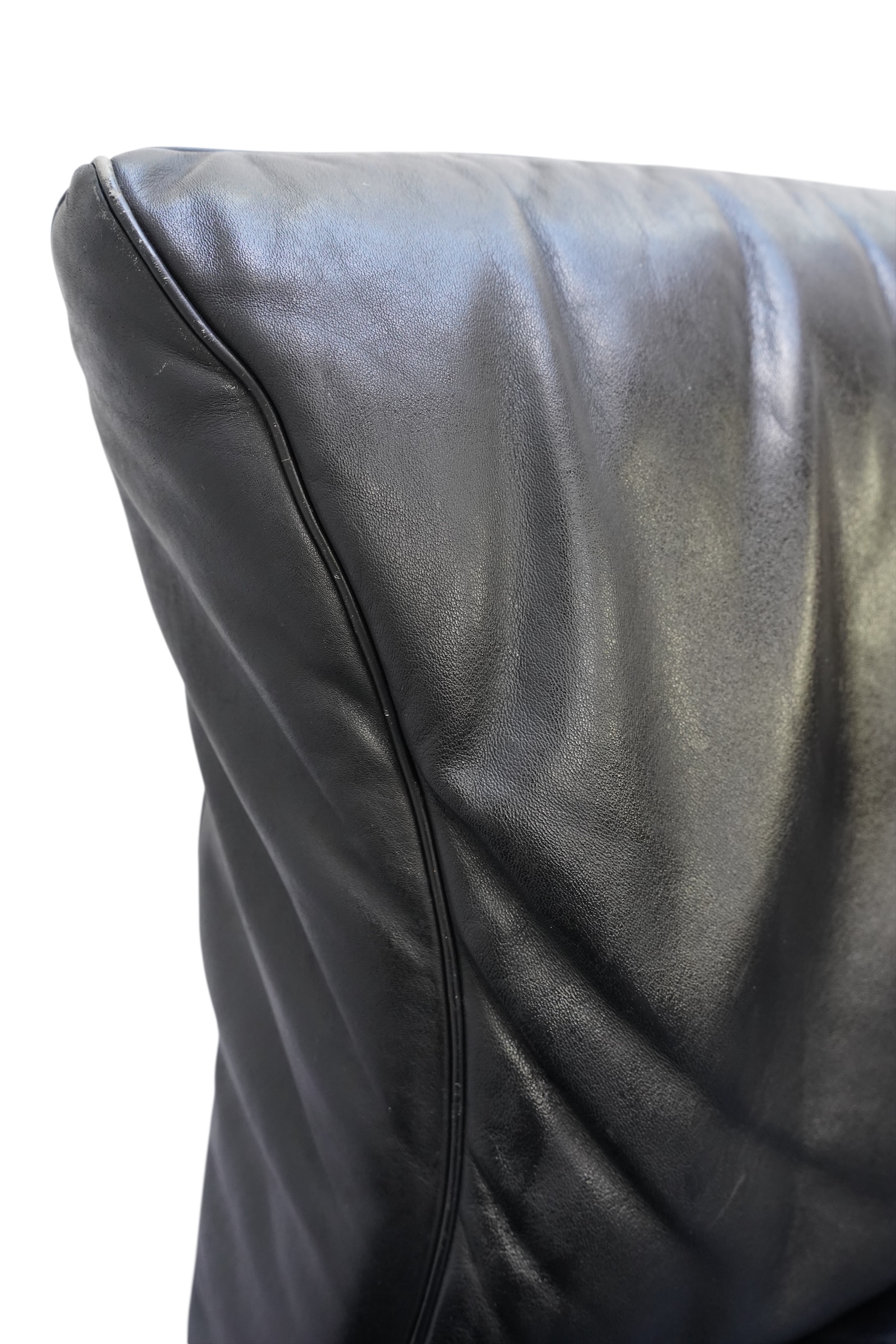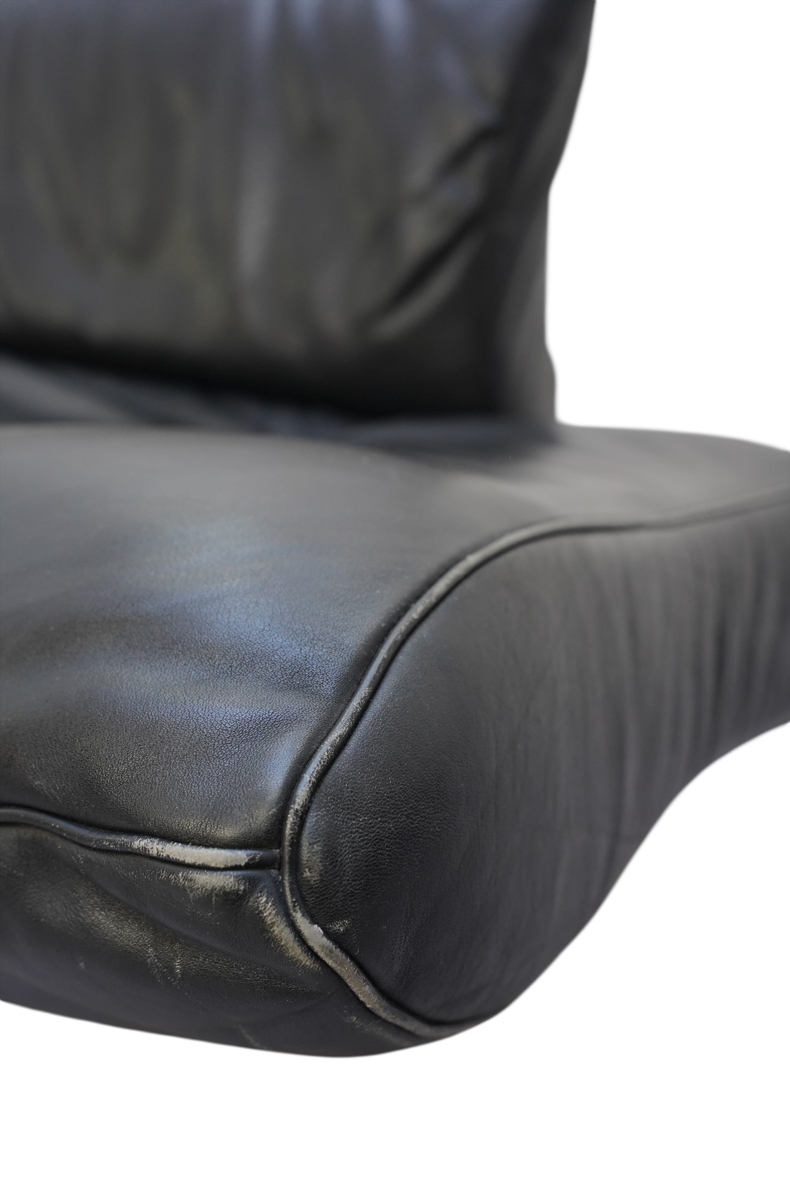 Canapé design original De Sede des années 1990 de Rito Frigg en cuir noir – cadre noir et cuir patiné. Ce canapé offre plusieurs configurations.