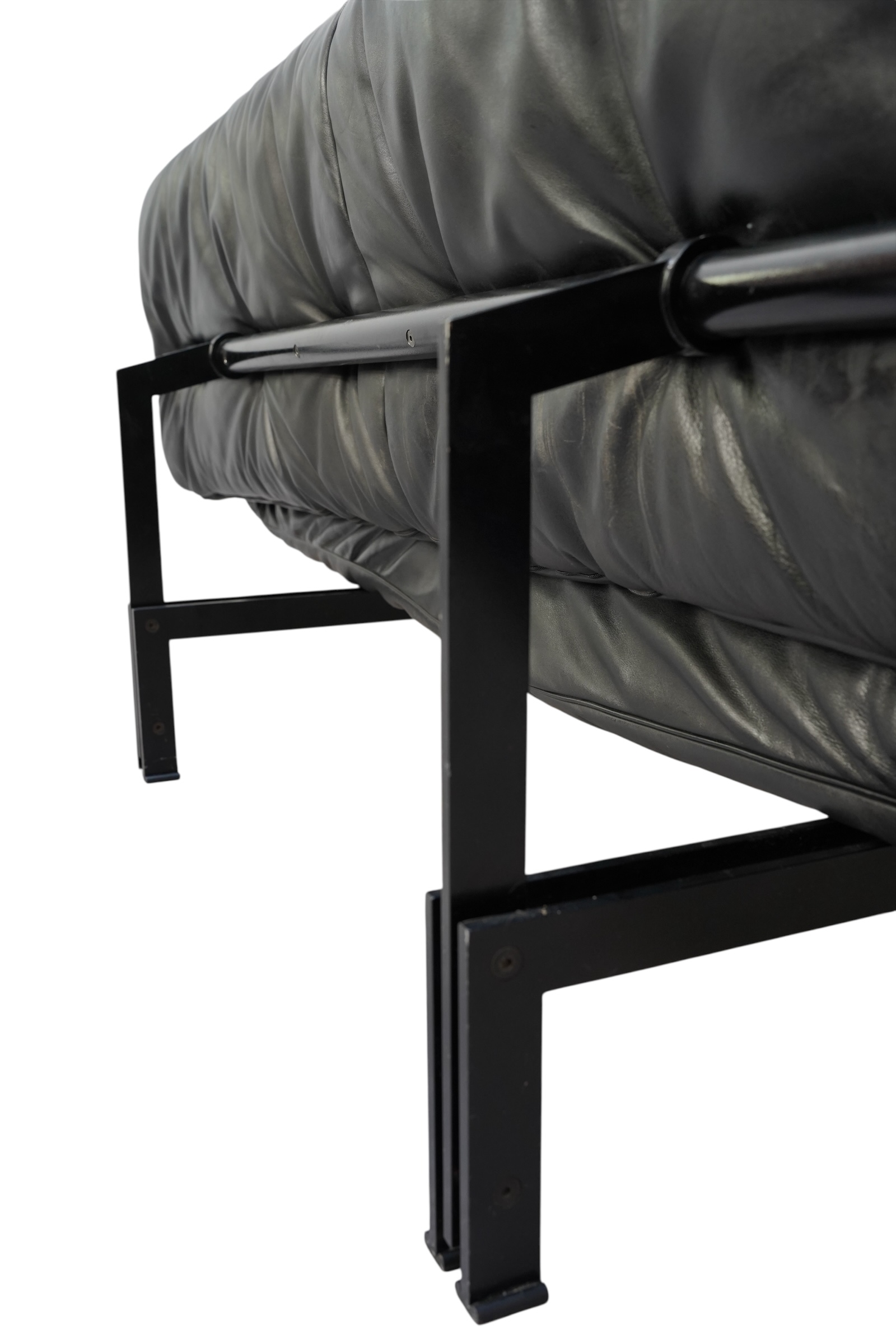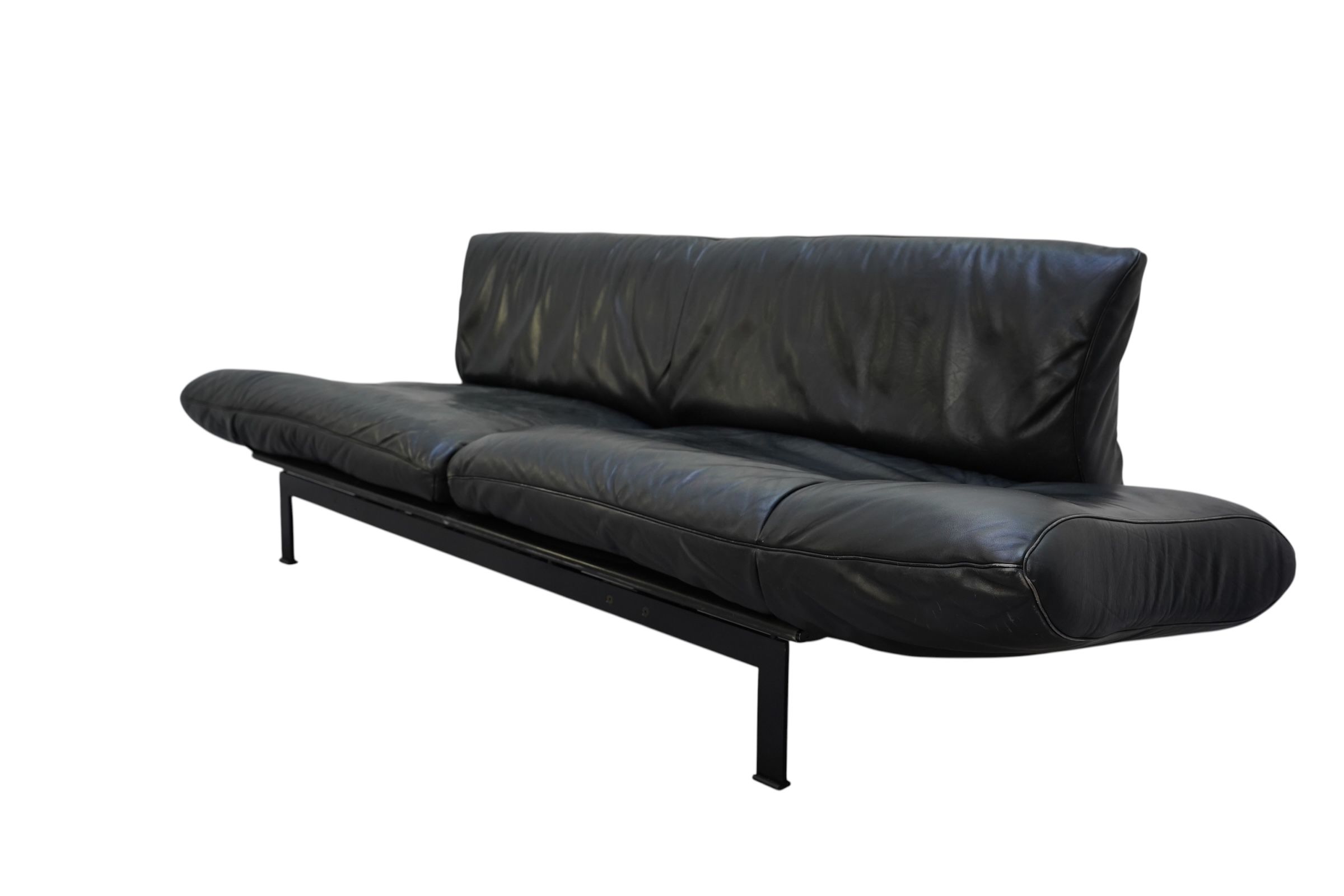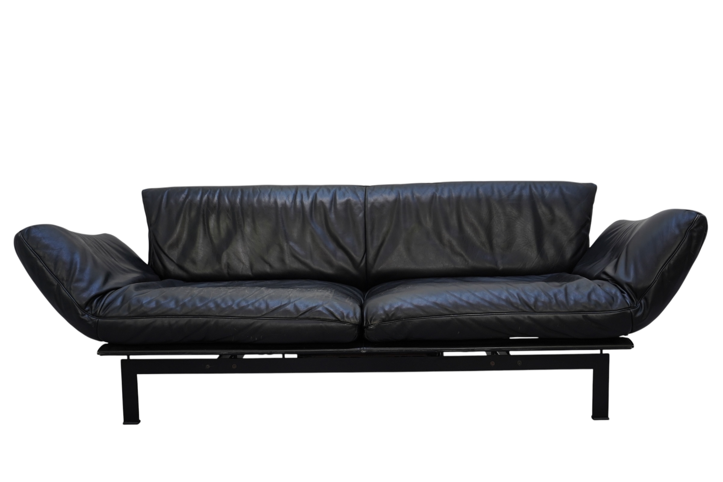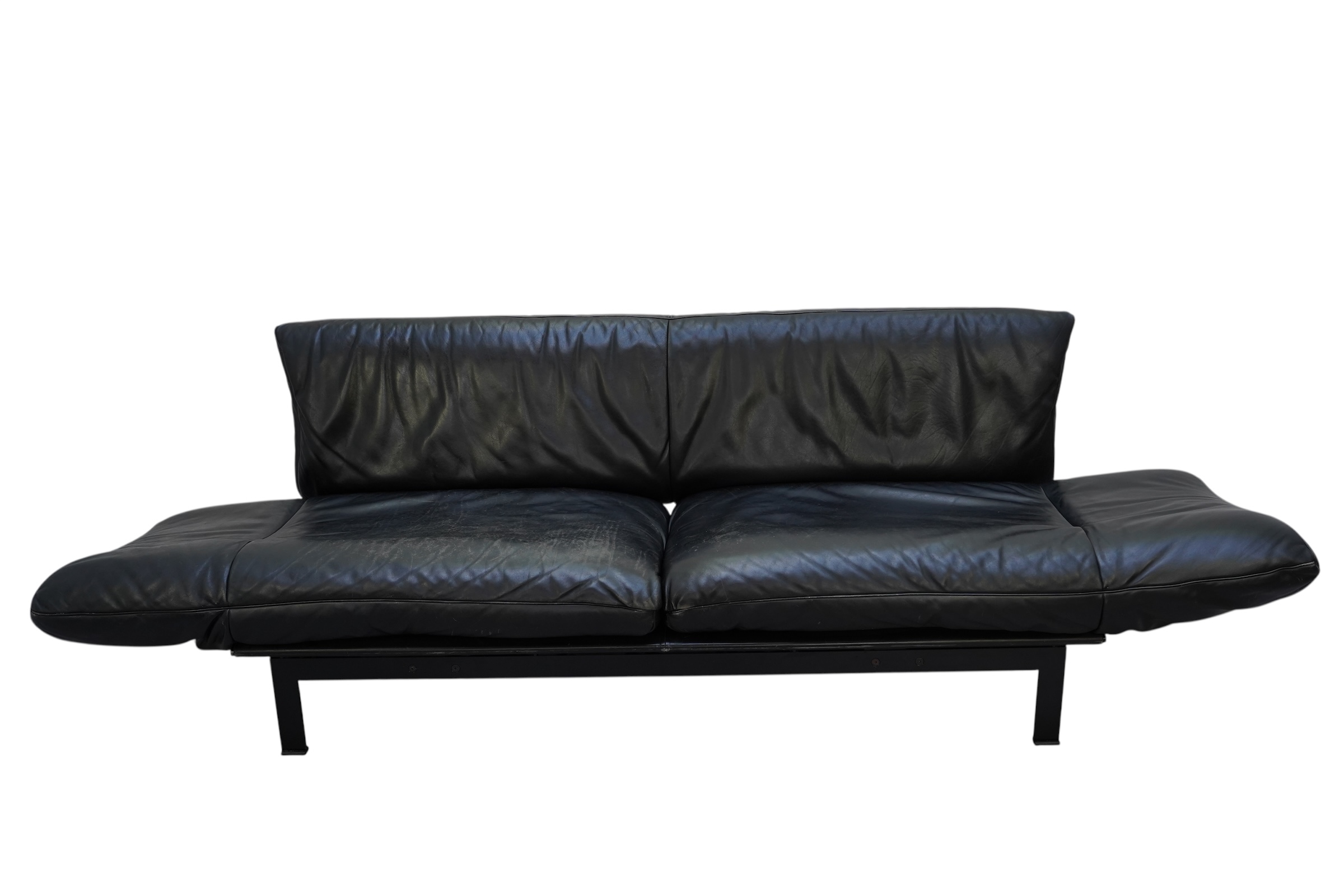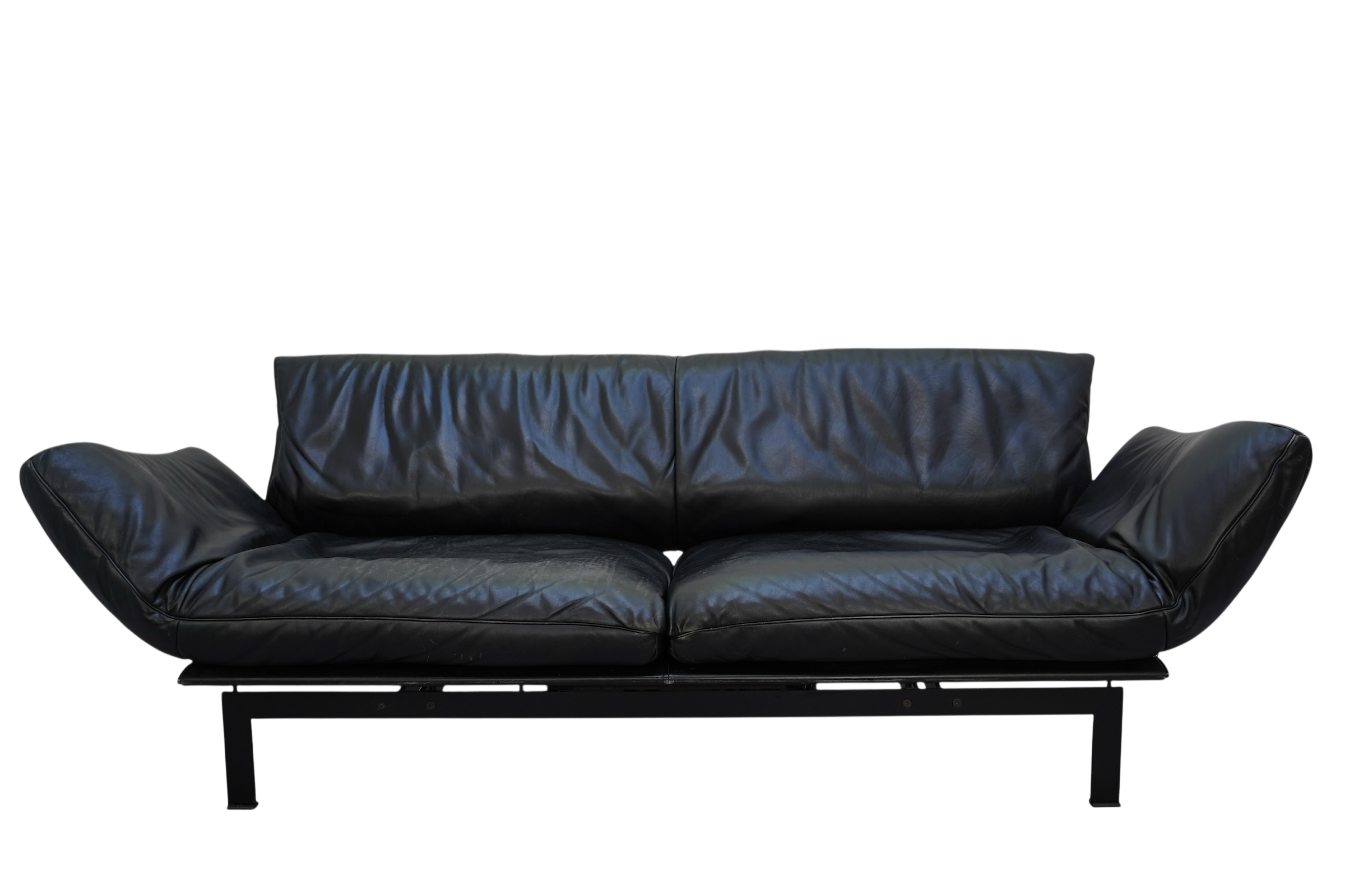 Canapé design original De Sede des années 1990 de Rito Frigg en cuir noir – cadre noir et cuir patiné. Ce canapé offre plusieurs configurations.
