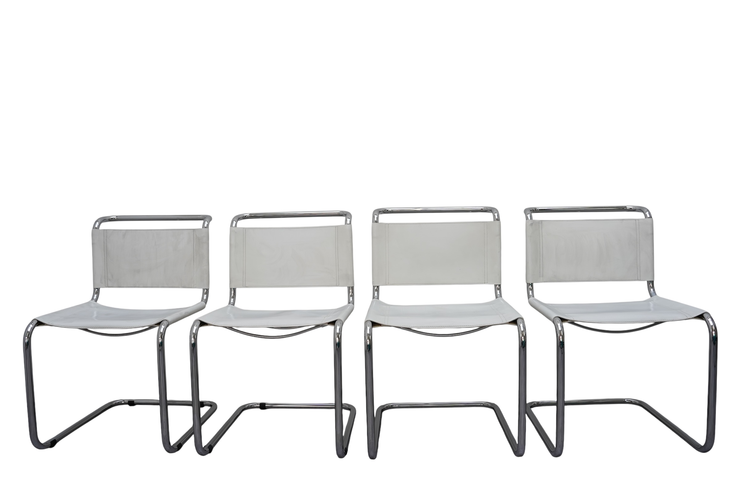 Set de 4 chaises cantilever inspirées S33 de Mart Stam pour THONET du style bauhaus. Structure en métal tubulaire chromée habillées d’un cuir blanc.